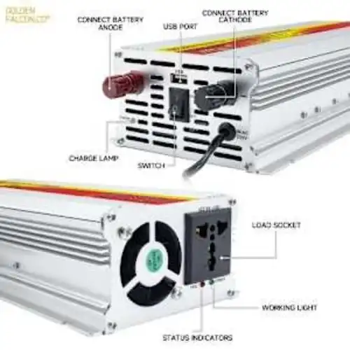 DC 5V USB output 3000W DC 12V to AC 220V Low standby power cost Multiple safe protection High coversion effeciency(>70%) Universal output socket Intelligent cooling fan controlled by the workload This power inverter is extraordinarily designed for home use,which can convert DC 12V/24V of portable power supply to AC 110V/220V/230V and it works for almost all the household electrical resistive appliances such as MP3/MP4 player,cell phone, laptop, emergency light, electric blanket, electric shaver, electric cooker,digital camera, digital video,CD/DVD